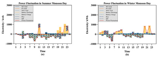 Power fluctuation on different typical days: (a) the result of summer monsoon days; (b) the result of winter monsoon days.
