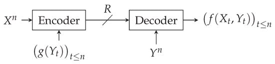 - Orlitsky, A.; Roche, J.R. Coding for computing. In Proceedings of the IEEE 36th Annual Foundations of Computer Science, Milwaukee, WI, USA, 23–25 October 1995; IEEE: Piscataway, NJ, USA, 1995; pp. 502–511. [Google Scholar]