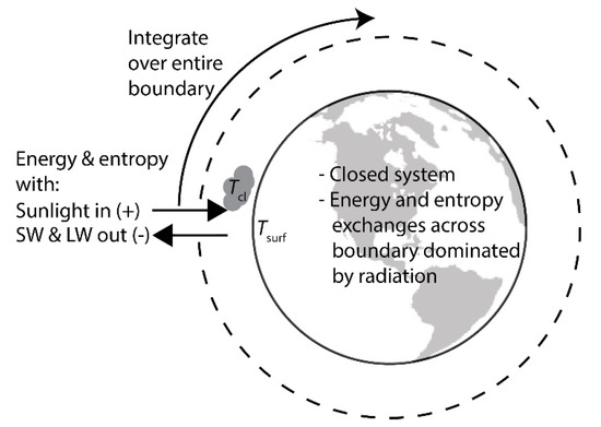 - Gibbins, G.; Haigh, J.D. Comments on Global and Regional Entropy Production by Radiation Estimated from Satellite Observations. J. Clim. 2021, 34, 3721–3728. [Google Scholar] [CrossRef]