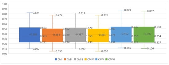 To observe the impact of normalization on Hellwig’s results, we designed a comparative study in which we considered a combination of normalization mode for the EWM and normalization formula for Hellwig’s method: combination mode I (CMI): none in the EWM and S in Hellwig’s method; combination mode II (CMII): MM in the EWM and S in Hellwig’s method; combination mode III (CMIII): none in the EWM and MM in Hellwig’s method; combination mode IV (CMIV): MM in the EWM and MM in Hellwig’s method; combination mode V (CMV): none in the EWM and VN in Hellwig’s method; combination mode VI (CMVI): MM in the EWM and VN in Hellwig’s method.