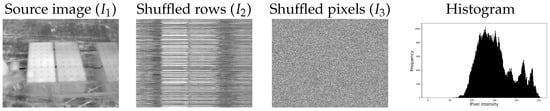 - The Photovoltaic System Thermal Images (PSTI) dataset [] consists of 277 thermographic aerial images captured using a Zenmuse XT IR camera with a wavelength range of 7 to 13 micrometers. These images were acquired using a DJI Matrice 100 quadcopter drone. In addition to the images themselves, this dataset provides environmental data including temperature, wind speed, and irradiance.