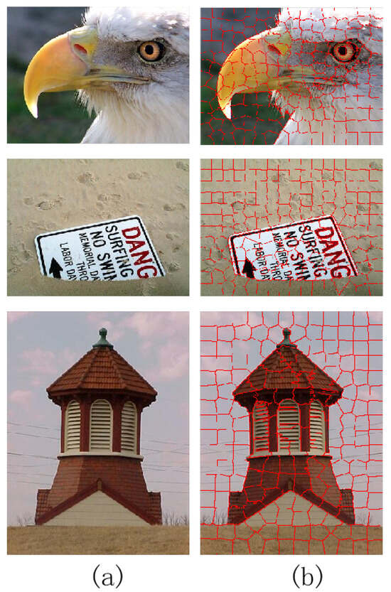 Segmented superpixels visual maps by SLIC methods (a) Input images. (b) Superpixel visual maps.