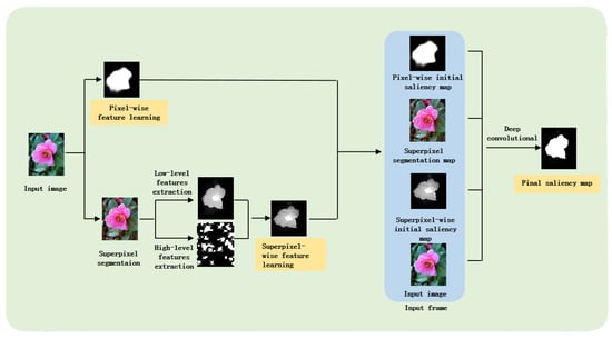 There are the following three steps in our process: pixel-wise feature learning, superpixel-wise feature learning, and superpixel-wise feature learning for final saliency maps. Figure 3 shows the flow chart of our method.