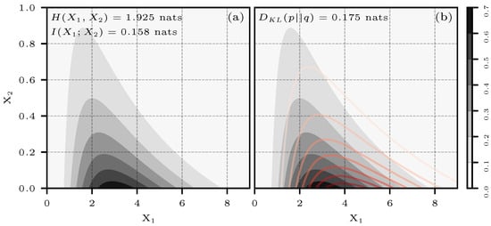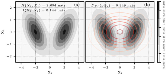 As KL divergence and mutual information evaluate ratios between distributions, this correction factor cancels out, and then, their expressions can be written similarly to Equations (16) and (17):