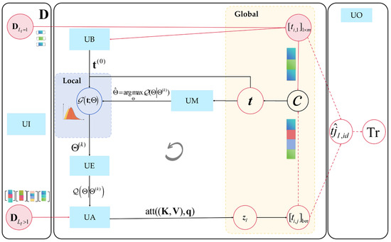 In this step, the distribution of the latent variables and are calculated. Figure 5 shows the entire calculation process of UA. The specific steps are as follows: