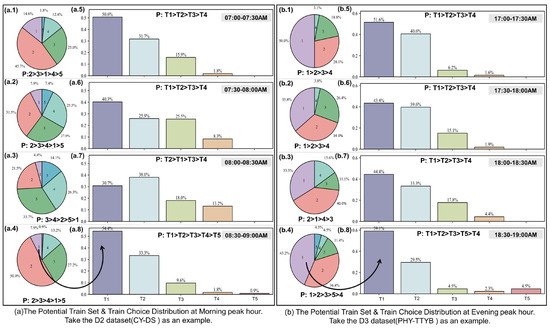Currently, urban rail transit (URT) has become the preferred public transport mode for residents due to its large capacity and high efficiency. For example, in Beijing, the total number of passengers reached 5.327 billion in 2022, of which 42.5% were transported by URT [1]. Due to the large proportion of transportation, the URT system also faces many problems, such as the fact that it is often difficult to transport passengers in a timely manner during peak traffic hours, which leads to crowding induced by passengers waiting for trains on platforms and other areas [2,3,4]. Furthermore, factors such as the capacity of different train types and station layouts also result in uncertain waiting times and complicated travel choices for passengers [2,5,6,7,8,9,10,11].