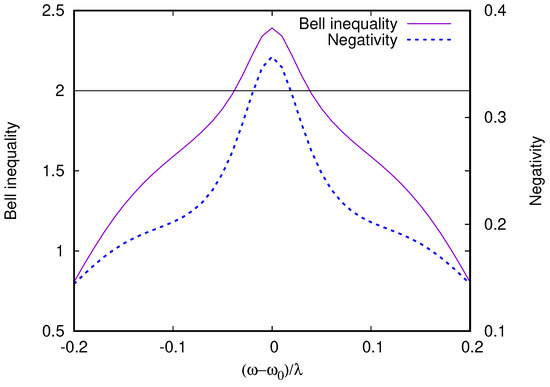 50]) of the reduced qubit pair density matrix (obtained from the total density matrix by tracing over the cavity). The negativity at resonance in