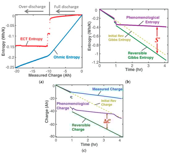 Energy storage systems such as batteries are ubiquitous. Ready availability and safety are two major issues plaguing the energy storage industry. The effects of capacity fade and instability can be dire, necessitating a consistent and accurate analysis approach. For electrochemical system discharge and charge, Helmholtz–Gibbs coupling [] yields termed the Ohmic power. For rechargeable energy systems that use a degradation measure defined with reference to a known ideal output/capacity, a reversible component obtained using the reversible current as —typically negligible in other systems—rendered the initial/reference capacity. Reversible current can be obtained as the initial current in a constant-resistive load discharge step, when the battery is at its healthiest. This allowed for the convenient choice of the widely used capacity fade as degradation measure, with charge content as transformation measure [,,].