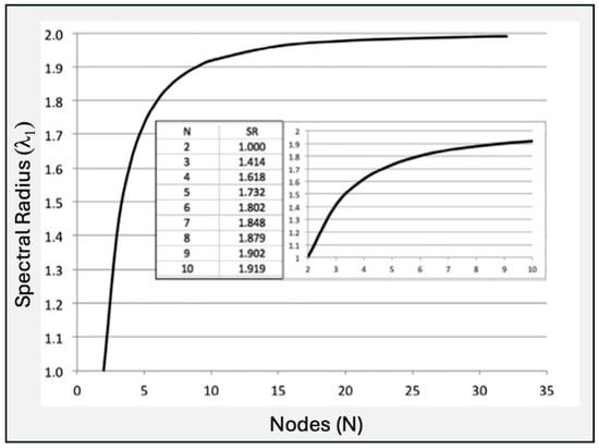 Spectral radius of linear sequential graphs (reproduced with permission from Phillips, J.D. 2016. Identifying sources of soil landscape complexity with spatial adjacency graphs. Geoderma 267, 58–64.) [23].