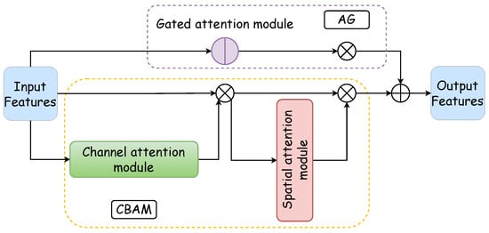 - A novel attention learning module has been developed featuring a synergistic integration of the CBAM and AG modules. This module serves as a comprehensive attention mechanism with dual functionality, thus supplanting the traditional skip connections to enhance the network’s feature representation capabilities.