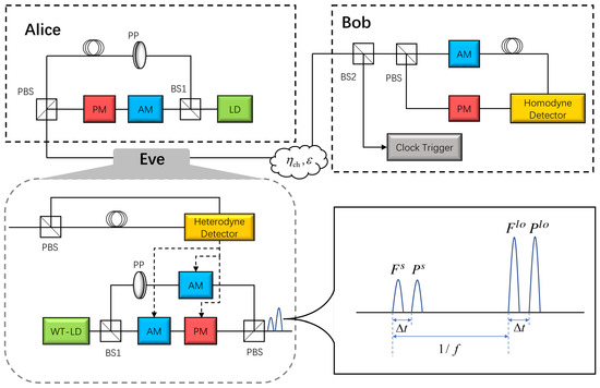 - Huang, J.Z.; Kunz-Jacques, S.; Jouguet, P.; Weedbrook, C.; Yin, Z.Q.; Wang, S.; Chen, W.; Guo, G.C.; Han, Z.F. Quantum hacking on quantum key distribution using homodyne detection. Phys. Rev. A 2014, 89, 032304. [Google Scholar] [CrossRef]