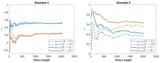 The convergence of CCM and cCCM with respect to the data length is shown in Figure 4.