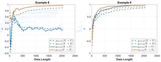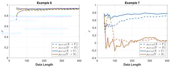 The convergence of CCM and cCCM with respect to the data length is shown in Figure 3.
