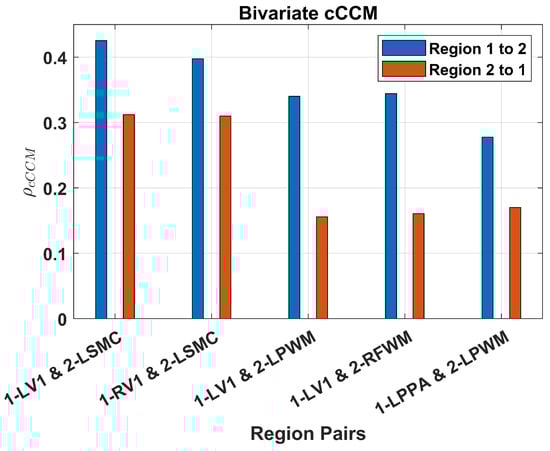 Let denote the set of dynamically coupled random variables that share the same attractor manifold. As shown in [], the multivariate conditional cCCM from with respect to (i.e., all the remaining random variables in ) is defined using the causality ratio as