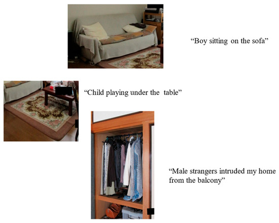 Thus, two case studies recently reported by Ishimaru and colleagues [24] showed potential relationships between specific items in the environment and particular visual hallucinations. Removing that item mitigated the hallucination. They reported cushions on a settee triggering hallucinations of a boy, patterns on a carpet, hallucinations of children and hanging clothes, a vision of a person (Figure 7). This suggests several one-to-one relationships between trigger objects and hallucinations. There was not the normal one-to-one mapping, but a new one. This was not consistent (or stationary), however, since sometimes the trigger object was seen correctly. Where others would see a cushion, the hallucinator saw a boy, where others saw clothes, a person, and a pattern on a carpet, children. To return to Figure 1, there is the possibility not that the person is seen instead of the cushion and lamp, but that the cushion and lamp are seen as a person.