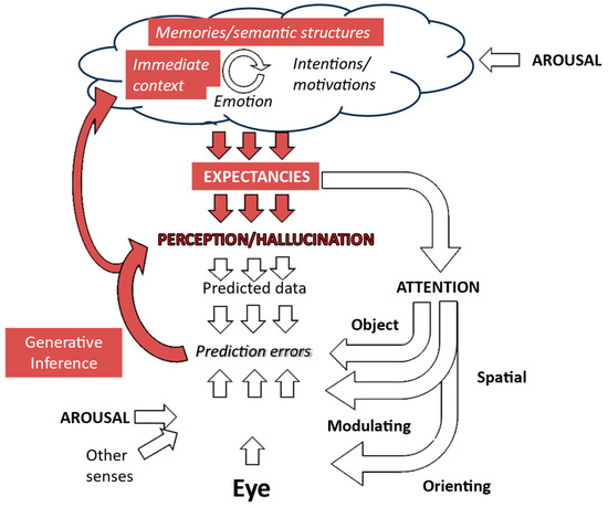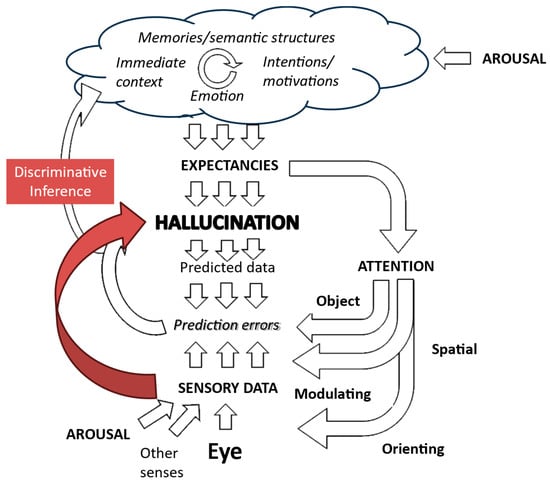 - Friston, K.J. Hallucinations and perceptual inference. Behav. Brain Sci. 2005, 28, 764–766. [Google Scholar] [CrossRef]