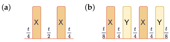 - Uhrig, G.S. Keeping a Quantum Bit Alive by Optimized π-Pulse Sequences. Phys. Rev. Lett. 2007, 98, 100504. [Google Scholar] [CrossRef]