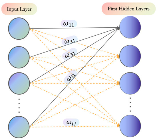 As shown in Figure 2, the normalized information entropy gain is used as the initial value of the weight connecting the -th input feature to the -th neuron in the first hidden layer, that is: