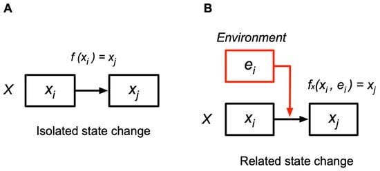 (A) Isolated state change refers to a change that occurs independently of the environment. (B) Related state change refers to a change that occurs depending on the environment, called cognition.