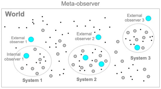 The traditional interpretations, subjective or objective, described the above deal with events for external observers who observe material systems from the outside. They do not apply to events that occur to internal observers acting as players such as LSs. Therefore, an alternative framework is essential, in which epistemic observations are objectified as the state changes of LSs in relation to their environments. Here, LSs are described as objectified subjects (i.e., cognizers) that experience events within a system. Nakajima [7] developed a theoretical framework for this type of probability, named “internal probability”, using the cognizers system model (Section 6), in contrast to “external probability”, which refers to the probability of events experienced by an observer external to the system. There are two types of internal probability: