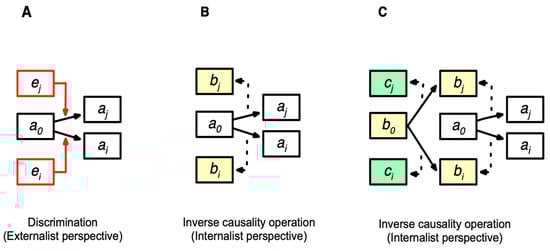 - For semiotic cognition to operate, LSs must measure the external states and produce symbols that signify these external states (local or global), based on which they change their effector states. A semiotic cognition model is presented based on the CS model that operates on the principle of “inverse causality (IC)”; it is not “reverse causation” or “backward causation”. The IC principle postulates that if a system (or a component of a system) changes from state x to y1 in some cases and from x to y2 in others (where y1 ≠ y2), then distinct external states must exist for x ⟼ y1 and x ⟼ y2, respectively (⟼ denotes a state change). LSs invented a measurement system based on the IC principle, a process called IC operation (or IC measurement), by which a subject LS produces symbols internally (in the form of system component states) that signify past states of the external reality hidden to the subject. By producing such symbols, a system can be aware of the external world [16], which is the core function of consciousness. “Consciousness” (or “awareness”) can thus be defined in a scientifically tractable form, as the production of internal states as symbols that signify external states, which are processed for actions. According to this definition, bacteria may be conscious (aware), although their IC measurement systems are much simpler than those used in humans [Section 7].