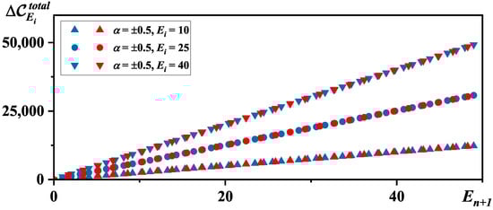 Next, we examine the total correlation among all emitted particles and the remaining part of the black hole. According to Equation (11), the total correlation of the whole system can be expressed as