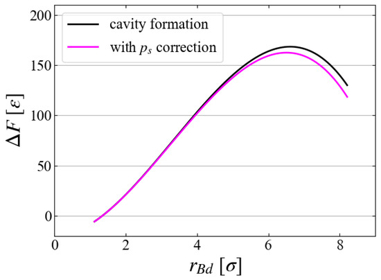 - Punnathanam, S.; Corti, D.S. Work of cavity formation inside a fluid using free-energy perturbation theory. Phys. Rev. E 2004, 69, 036105. [Google Scholar] [CrossRef] [PubMed]