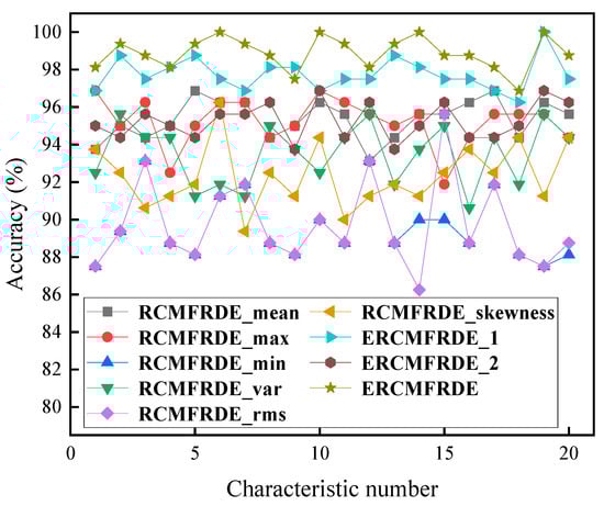- A comparison of the ERCMFRDE-based feature extraction method with other feature extraction methods revealed that the ERCMFRDE method had the highest accuracy rate, proving to be significantly better than the entropy algorithm with a single coarse-grained processing and the traditional kinds of entropy algorithms. This evidence serves to illustrate the superiority of the proposed ensemble entropy method for feature extraction and fault identification.