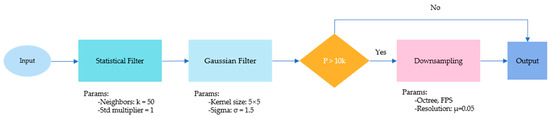 Flowchart of the preprocessing module. This module is utilized to filter out certain noise and to sample high-resolution point clouds.