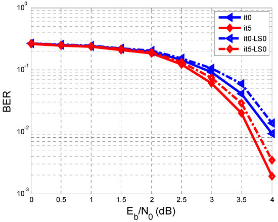 - Cuc, A.-M.; Morgoș, F.L.; Grava, A.-M.; Grava, C. Iterative Equalization and Decoding over an Additive White Gaussian Noise Channel with ISI Using Low-Density Parity-Check Codes. Appl. Sci. 2023, 13, 12294. [Google Scholar] [CrossRef]
