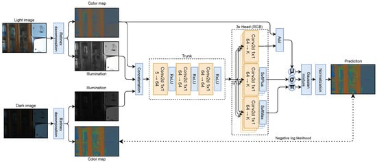 1], the authors proposed to use a neural network for retinex decomposition. The model is trained to reconstruct both reflectance and illumination to match the well-lit images’ maps. KinD and KinD++ [
