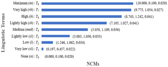 With a dataset gathered from 175 individuals, ranging from 0 to 10 on a scale, Yang et al. converted 32 language terms into NCMs using membership function fitting and fuzzy statistics [30]. In a subsequent study [29], five of the original 32 models and two adaptive linguistic terms, along with two linguistic terms, were utilized for credibility evaluations. NCMs encoded nine linguistic terms, as shown in Figure 1 [16]. The nine linguistic terms, each associated with distinct grades as delineated in Figure 1, are also used in this study’s context.