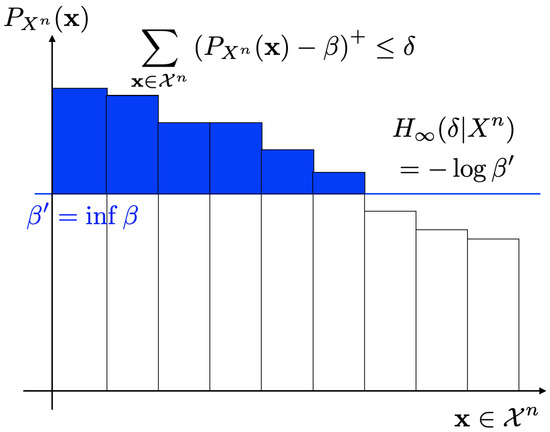 Here, is a decreasing function of . The smooth Rényi entropy of order 0 and the smooth Rényi entropy of order ∞ are, respectively, called the smooth max entropy and the smooth min entropy [20].