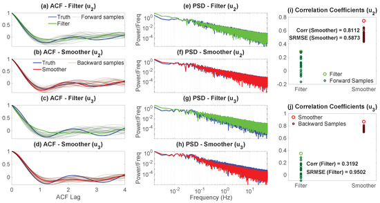 Depending on the use of observations, DA methods can often be divided into two categories: filtering and smoothing. Filtering uses past observations up to the present, making it essential for initializing real-time forecast models. Smoothing, which incorporates both past and future data, provides more accurate offline estimates, particularly in reanalysis for climate and oceanography [46,47,48,49,50]. For linear systems with additive Gaussian noise, the celebrated Kalman filters and Rauch–Tung–Striebel smoothers offer closed-form solutions for the posterior distributions [46,51,52,53]. Beyond improving state estimation, the optimal filter and smoother statistics enable effective sampling of trajectories, offering insights beyond the point-wise estimates. Since these sampled trajectories incorporate the information from the observations, they are often more accurate than those simulated from imperfect models. These state estimation and sampling methods are widely used in practice to understand dynamical properties, develop surrogate models, assist in building stochastic parameterizations, and quantify uncertainty and model error.