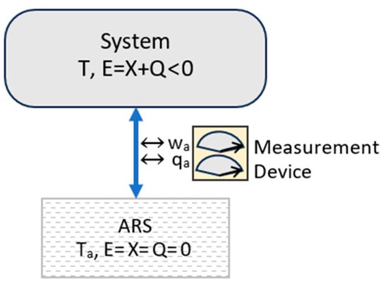 Exergy and entropic energy are defined by perfect measurements of ambient work and ambient heat as a system reversibly transitions to its ARS (Figure 1). Ambient work is defined as the sum of mechanical work and work potential output to the ambient surroundings. Exergy equals the ambient work and entropic energy equals ambient heat, as reversibly recorded by an external measurement device. The measurement device is a macroscopic classical device in equilibrium with the ambient surroundings, and its record of results is independent of observation or any specific observer.