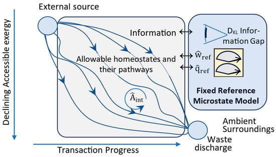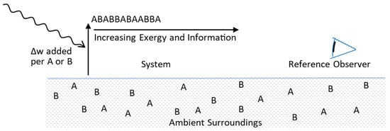 Corollary 5-4 (configurational refinement) is a reformulation of Vopson and Lepadatu’s Second Law of Infodynamics []. It describes a transition’s push to minimize the information gap and increase its macrostate model’s accuracy. It is a much stronger statement than the original statement of the Second Law of Infodynamics, which focused on statistical entropy and a description’s precision, without regard to accuracy. Section 5.2 described a simple model to illustrate how Corollary 5-4 can lead to the evolution of self-replicating arrays with increasing exergy, information, and transcription fidelity.