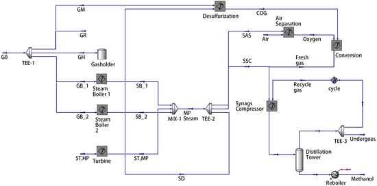 The gas-to-methanol process is a chemical process primarily involving the purification and reforming of coke oven gas, which is followed by the synthesis and refining of methanol. During coal coking, significant amounts of coke oven gas are emitted directly into the atmosphere through combustion, causing serious environmental pollution and wasted energy. The gas-to-methanol process offers an effective way to repurpose this gas. In this process, the operating equipment includes various energy media such as gas, steam, and electricity [1,2]. Multi-energy systems are employed to optimize the allocation of these energies, thereby avoiding unnecessary energy losses associated with optimization of a single unit of energy [3].