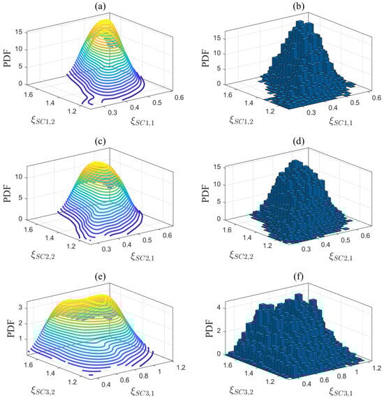 Second, using Bayesian estimation theory with as a condition, the posterior probability of the unknown parameters is estimated [37,38,39]. In the k-th dimension of , the upper and lower bounds of the parameter are defined based on the maximum and minimum values of the corresponding parameter set in . This enables the division of into equal intervals within that dimension. The interval division is uniformly applied across all dimensions of , resulting in a total of S high-dimensional intervals, where . Assuming there are sets of prior samples in that fall within the s-th interval, the probability of a sample within that interval is represented by a fictitious element . Having determined the sequence of sample sizes within each interval, is expressed as