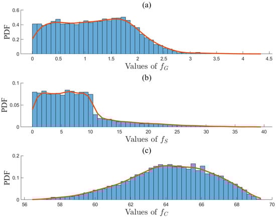 Kernel density estimation (KDE) is a nonparametric approach that estimates the overall PDF by smoothing each data point [40]. Based on the fundamental formula of KDE, the posterior PDF of can be described as