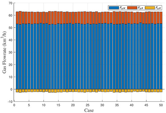 Based on process knowledge and practical engineering experience, the direction in which the system stores gas in the gas holder is defined as the positive direction. The gas holder volume reflects the imbalance between gas supply and consumption. When the gas holder operates within its designated operating range, it can effectively balance any surplus or shortage of gas in the system. The optimization constraints of the gas holder are described as follows: