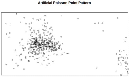 The inhomogeneous Poisson point process (IPPP) is one of the most popular point processes used in SDM [,]. An IPPP defined over a survey area A has the density function: