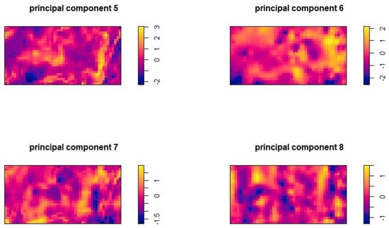 A Poisson point pattern randomly generated by the artificial intensity function and the 5th to 8th principal components.