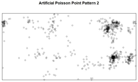where and are the four principal components, and and are their standard deviations, respectively. The distributions of these four principal components are shown in Figure 3. An example of the Poisson point patterns generated is shown in Figure 4.