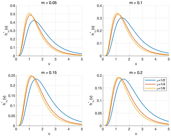 From Equation (18), we investigate the steady state of Equation (17). The stationary solution h * ( v ) of Equation (17) satisfies