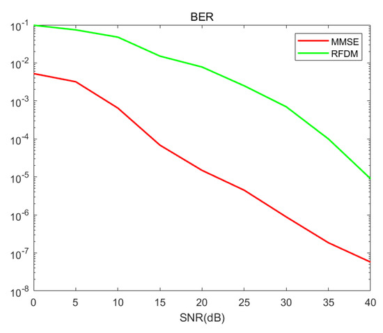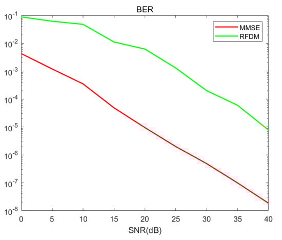 Figure 3 and Figure 4 present the BER performance of the proposed RFDM and the MMSE scheme when using BPSK and QPSK modulation, respectively. It shows that our solution currently has a performance gap with MMSE, but when SNR exceeds 20, our bit error rate can achieve which is still competitive, especially since MMSE uses 128 subcarriers while we only use 96 subcarriers.