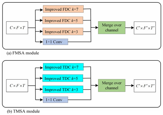 (2) Frequency multi-scale attention (FMSA) and temporal multi-scale attention (TMSA) modules are proposed, which apply improved dynamic convolution for multi-scale feature extraction in frequency and time dimensions, respectively. This enables the features to contain more information to avoid the limitations of the convolutional feature and ensures physical consistency.