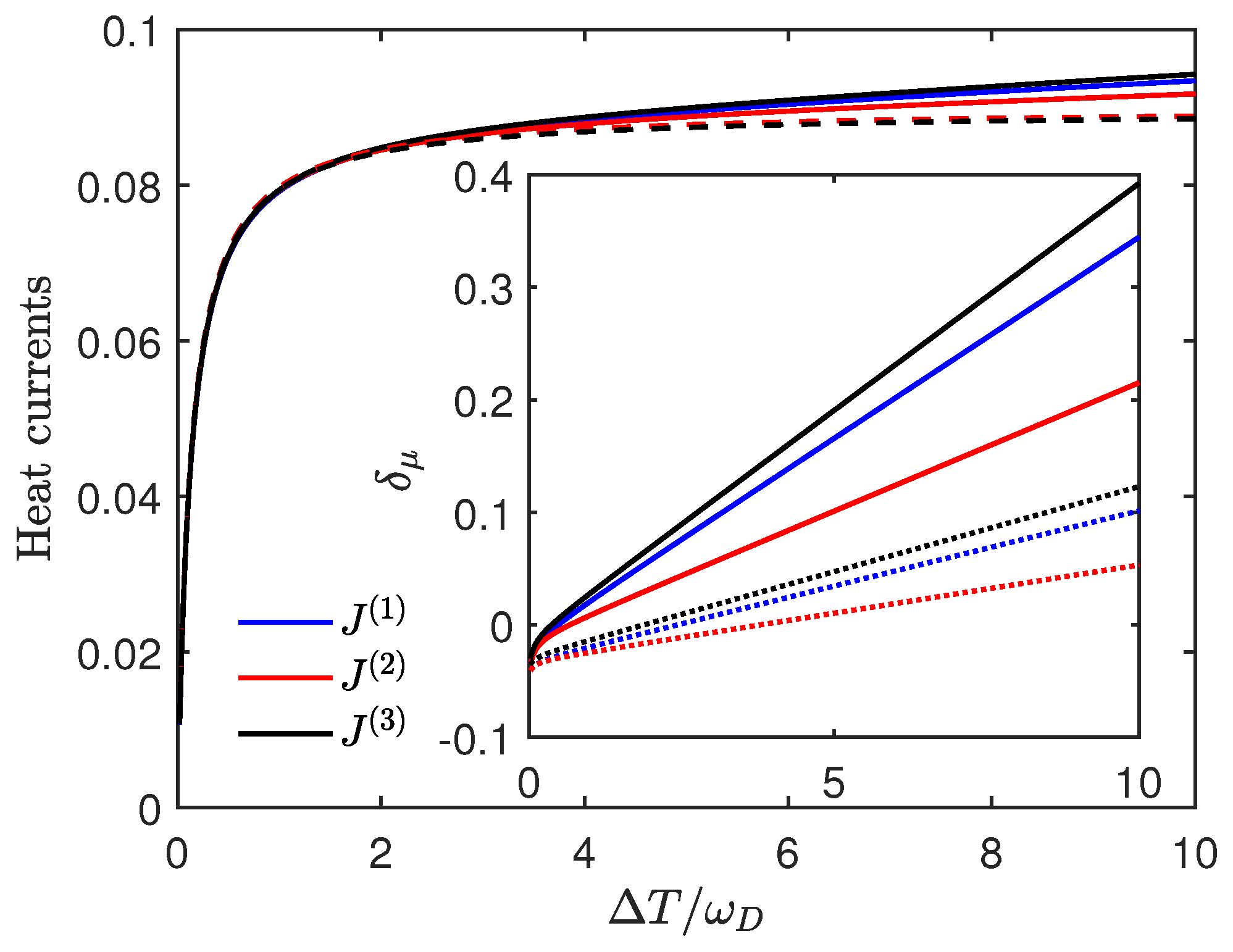 - In contrast, for large temperature differences, the system exhibits distinct behavior—while the heat current saturates to an upper bound when neglecting the Lamb shift, its inclusion leads to a divergent heat current as the temperature gradient approaches infinity.