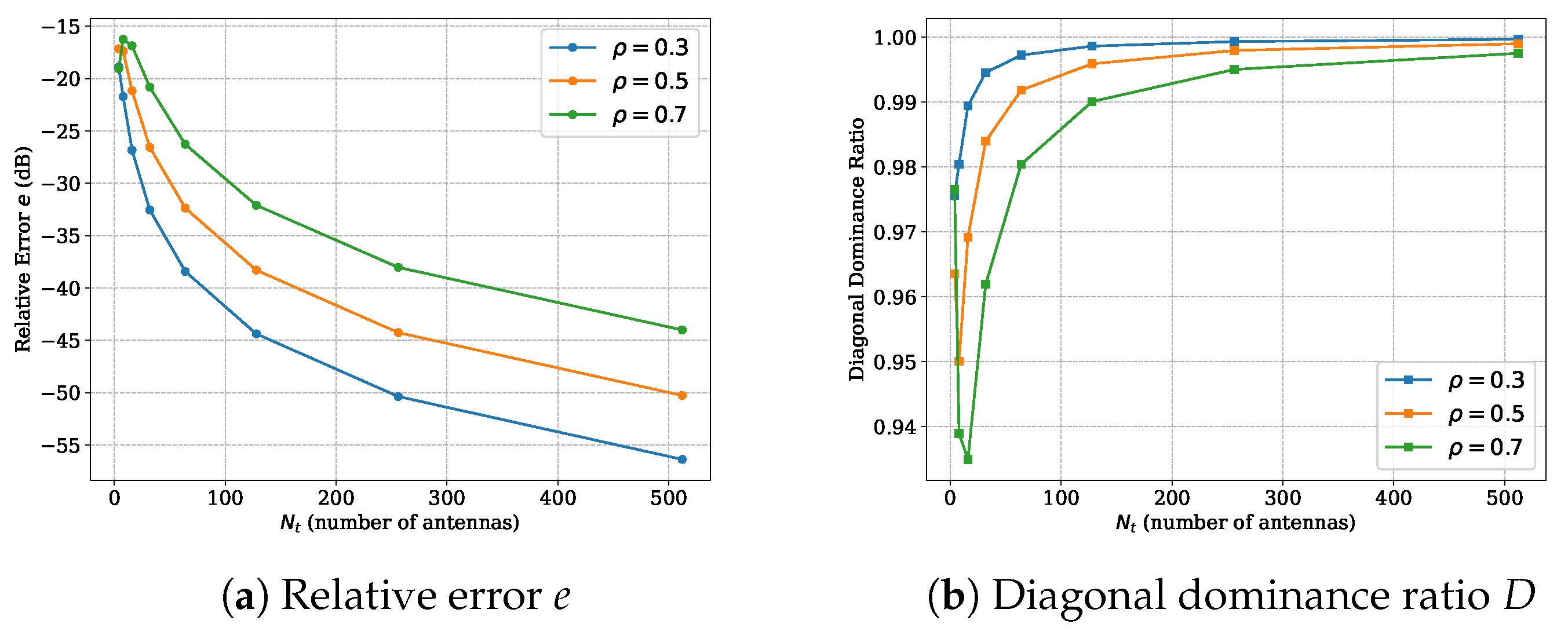 - Berra, S.; Benchabane, A.; Chakraborty, S.; Maruta, K.; Dinis, R.; Beko, M. A Low Complexity Linear Precoding Method for Extremely Large-Scale MIMO Systems. IEEE Open J. Veh. Technol. 2025, 6, 240–255. [Google Scholar] [CrossRef]