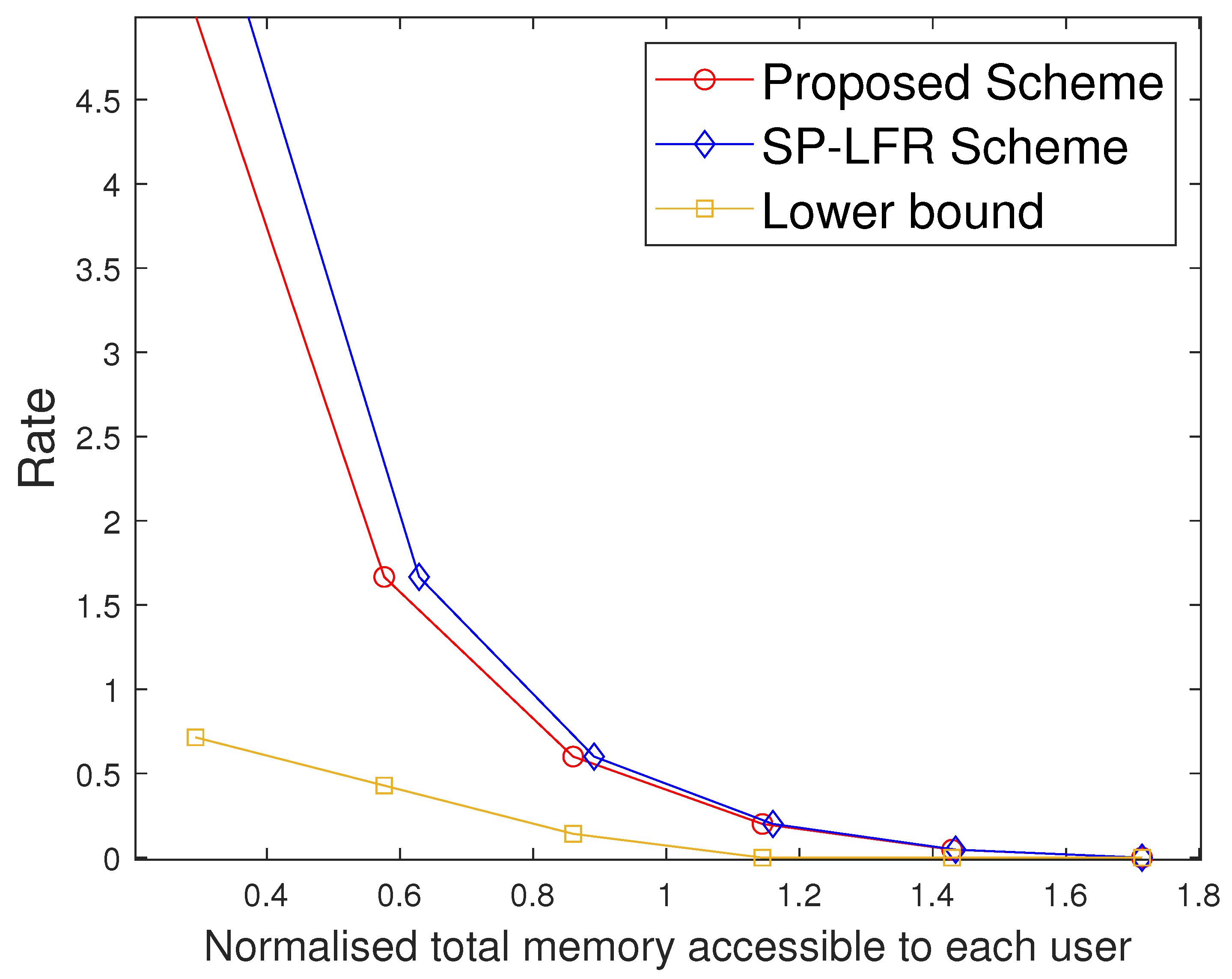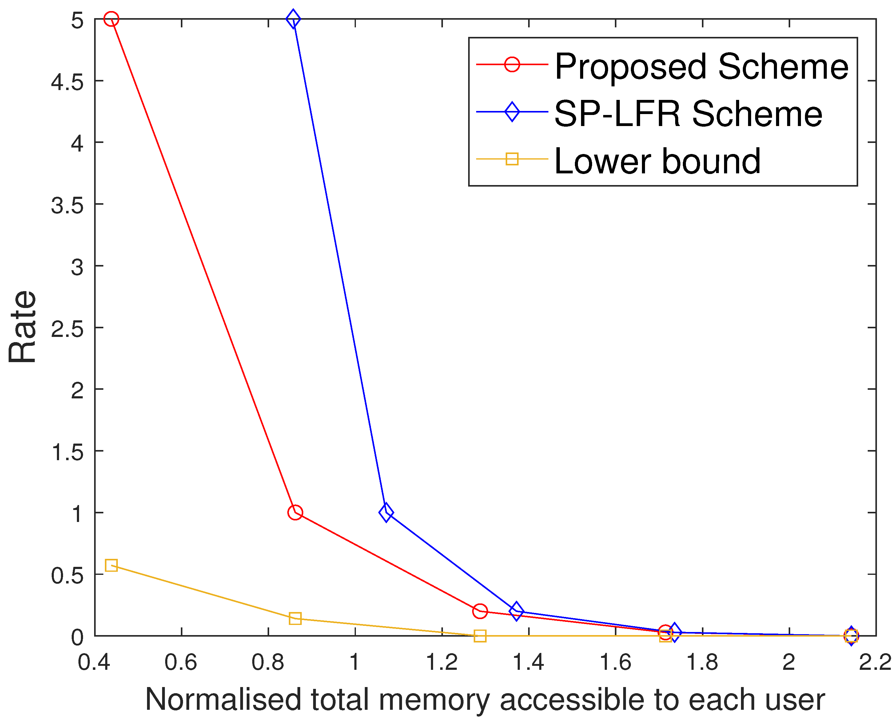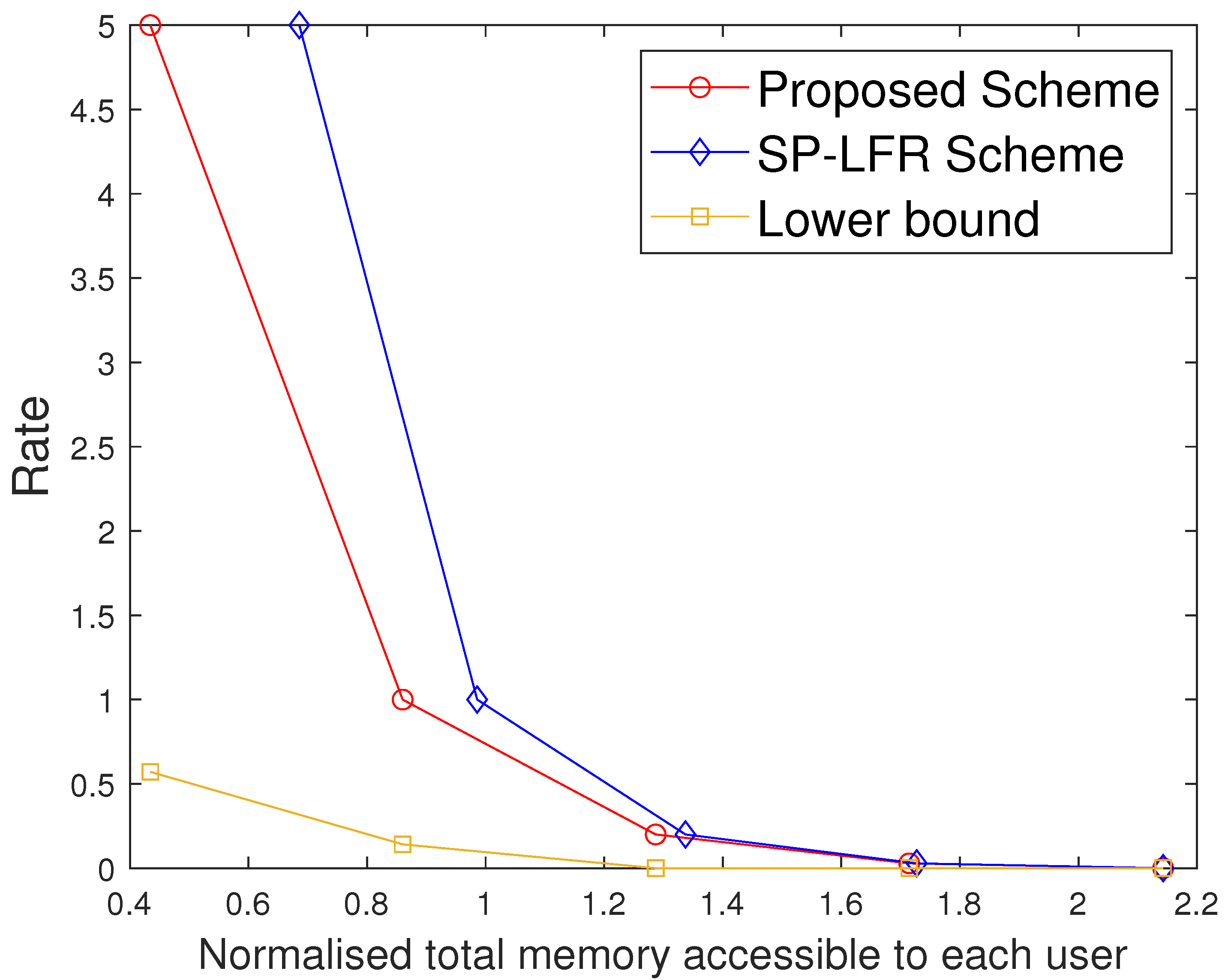 - It is shown that to achieve the same rate both in [17] and in the proposed scheme, the total memory accessed by each user is less in the proposed scheme.
