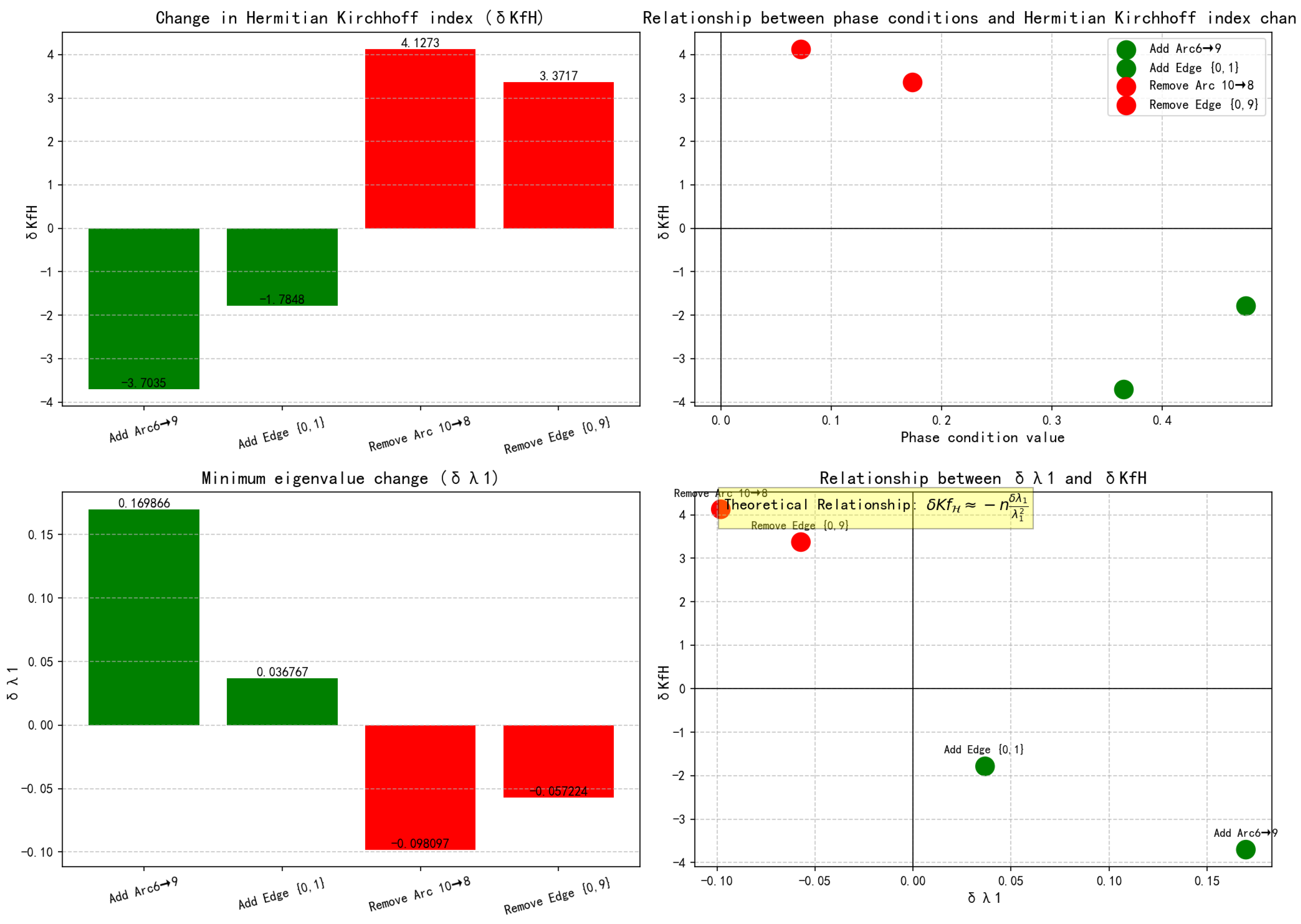 Section 5 examine the mechanism by which adjustments of edges/arcs can improve the first-order MAS’s convergence performance. The conclusions are strictly derived from first-order eigenvalue perturbation theory and therefore apply only to the small-perturbation regime in which a few edges/arcs are added or removed at any one time. We emphasize that the present study is restricted to a small number of operations for reasons of both theoretical rigor and practical feasibility. If a large number of edge/arc modifications are performed continuously, the network topology may change substantially and the core assumptions underlying our analysis no longer hold. Specifically, (1) the phase-discrimination criterion depends on the pre-operation eigenvector